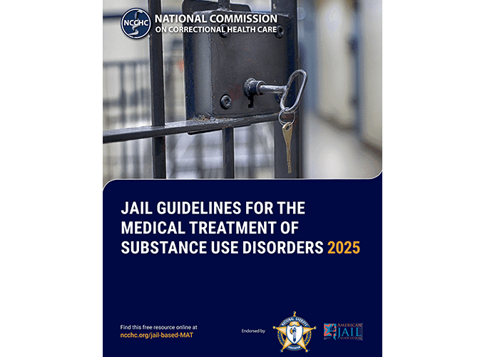 NCCHC’s new resource, Jail Guidelines for the Medical Treatment of Substance Use Disorders 2025, provides the latest research and best practices for addressing the opioid crisis and ensuring that incarcerated individuals receive effective treatment. This free publication incorporates up-to-date, evidence-based recommendations for implementing and evaluating medication-assisted treatment (MAT) programs, along with insights into the evolving regulatory landscape.