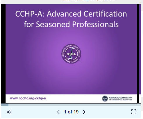 Be a leader in the field. Demonstrate your commitment to quality. Certified Correctional Health Professionals are eligible to apply for Advanced Certification after being certified for at least three years in the basic program.