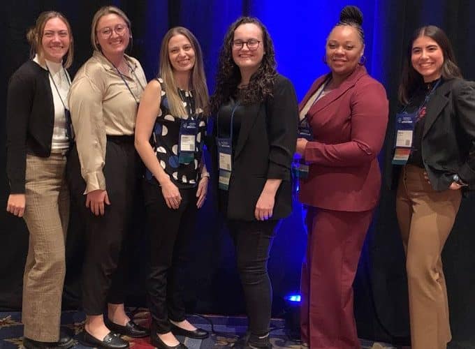 (L to R) Olivia Scott, MSW, Monroe Correctional Complex; Mary Comis, psychology PhD student; Kristen Moser, MSN, RN, BOP – USP Lewisburg; Sherry Rice, mental health counseling student; Wakiekiemonakie Reid, nursing student; Sierra Molina, criminal justice graduate student